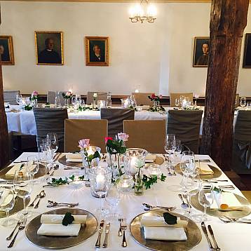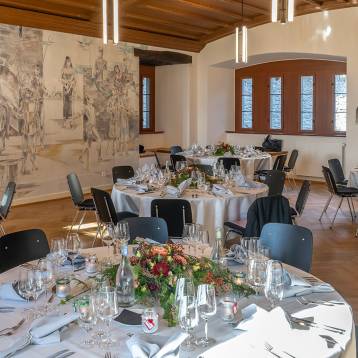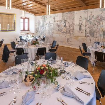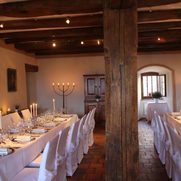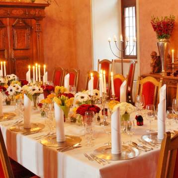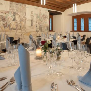 Festlich eingedeckt und liebevoll dekoriert ist dies der perfekte Rahmen für eine Familienfeier, Hochzeitsfeste, Taufe oder einen Firmenanlass. Der Kleine Rittersaal eignet sich auch bestens für Empfänge, Meetings und Seminare.