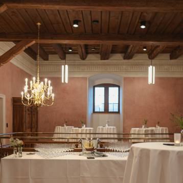 Die Räumlichkeit liegt angrenzend zum Kleinen Rittersaal und kann an Hochzeiten für den Apéro oder als Tanzfläche genutzt werden.