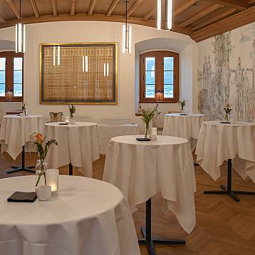 Geniessen Sie den Apéro, das Dinner oder die Kaffeepause Ihres Seminars in der einmaligen Atmosphäre der Burghalle.